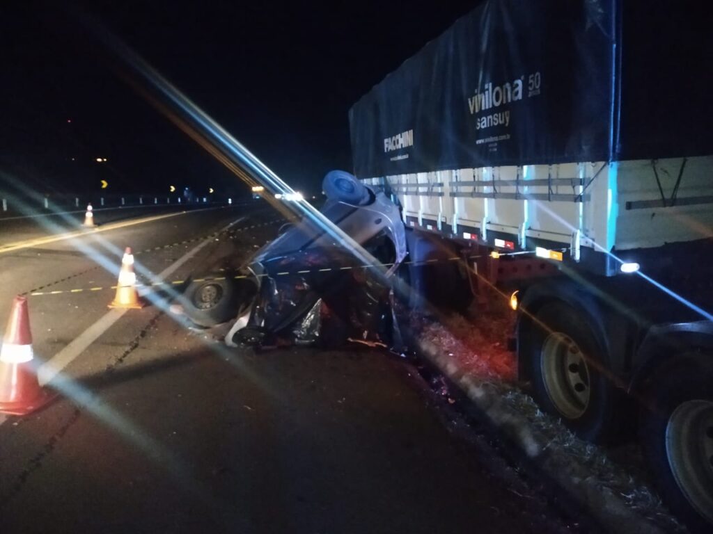 Informações priliminares levantadas pela PM apontam que o Fiat Pálio invadiu a pista contrária ocasionando a colisão frontal com o bitrem.