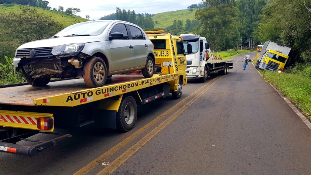 Nesta terça-feira (10) a equipe da Polícia Militar foi acionada para prestar apoio em uma ocorrência de acidente de trânsito na BR 158, perto da divisa entre Marquinho e Palmital.