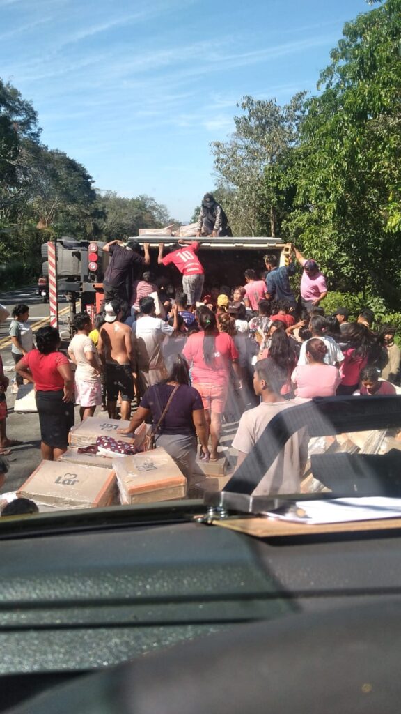 Caminhão tomba na BR-277 em Nova Laranjeiras e tem carga saqueada