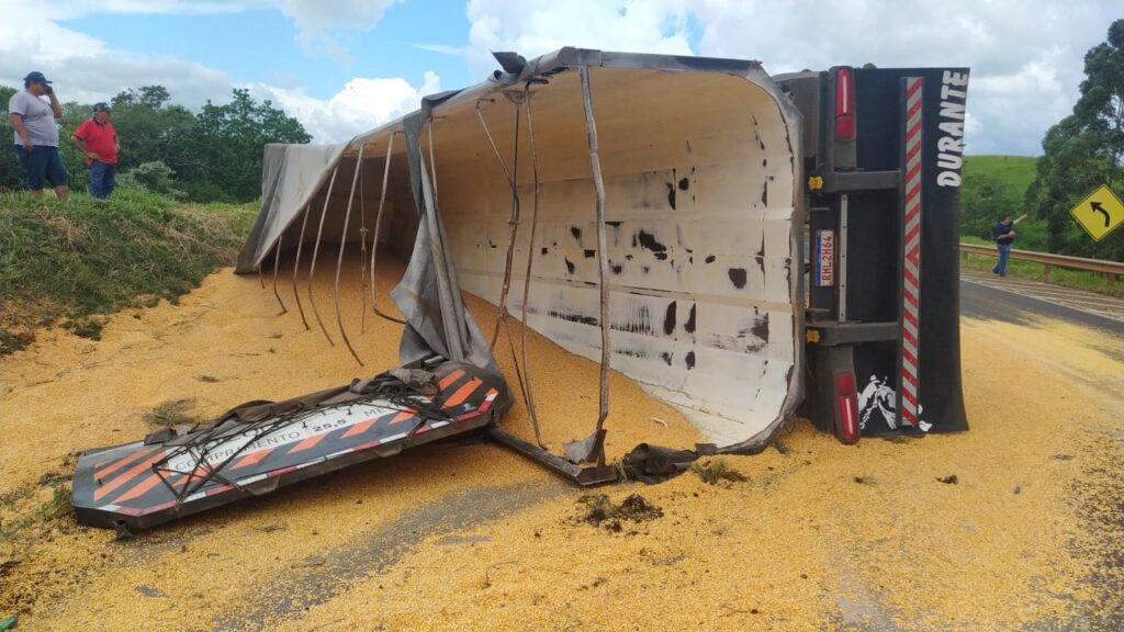 De acordo com informações a carga de milho foi saqueada por moradores e populares próximo ao acidente.