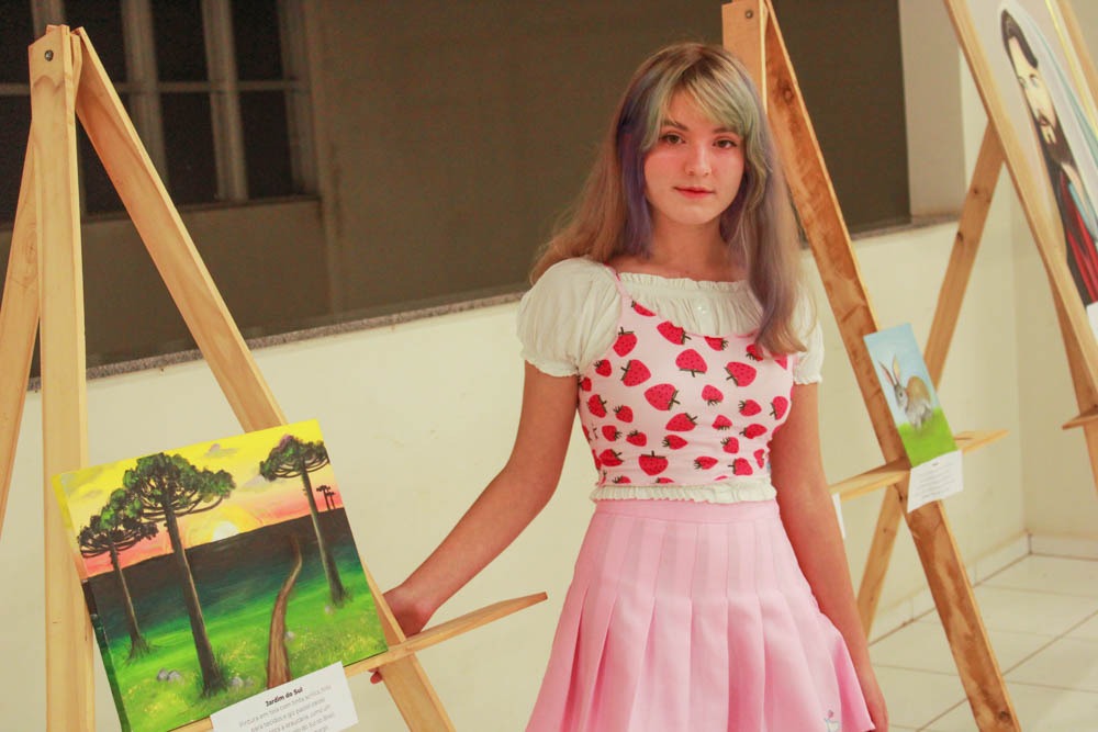 “É uma honra participar da minha primeira exposição, com artistas mais velhos, com mais experiência”, disse a jovem artista Emily, de apenas 17 anos.