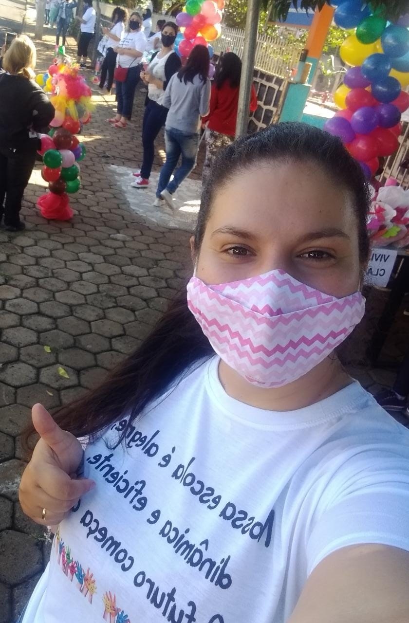 “Essa profissão é muito gratificante. Poder ensinar, partilhar conhecimento, brincadeiras com as crianças, poder estarmos juntos aprendendo uns com os outros, além de nos apegarmos com nossos alunos. Eles fazem parte da nossa vida, nossa história e tudo que fazemos é por eles, pra ver a alegria deles, e o conhecimento que também é importante. Nessa pandemia todos os professores precisaram se reinventar, buscar meios de não perder o vínculo com nossos alunos e principalmente estabelecer a rotina do conhecimento, para que nossos pequenos não percam o ano letivo, é muito difícil ficar em casa, a saudade da escola, dos alunos é grande, da interação, da alegria que eles nos passam. Mas logo tudo isso vai passar e estaremos todos juntos novamente”.