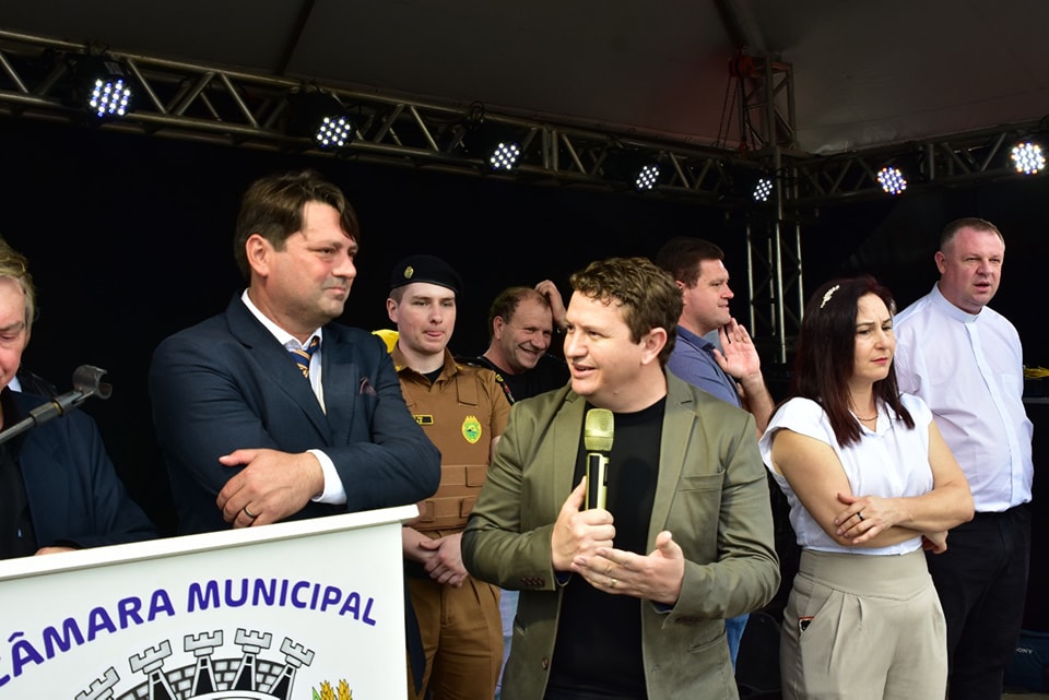 Em discurso, o prefeito Élcio Jaime agradeceu aos quedenses pela participação e atuação direta no crescimento do município. “Parabéns a todos que diariamente cumprem sua missão, contribuindo com o desenvolvimento de Quedas, buscando sempre novos projetos, aceitando o desafio de fazer mais e melhor, não perdendo de vista os anseios da comunidade, mostrando que não existem fronteiras ou limites para alcançarmos nossos objetivos”, declarou Élcio.