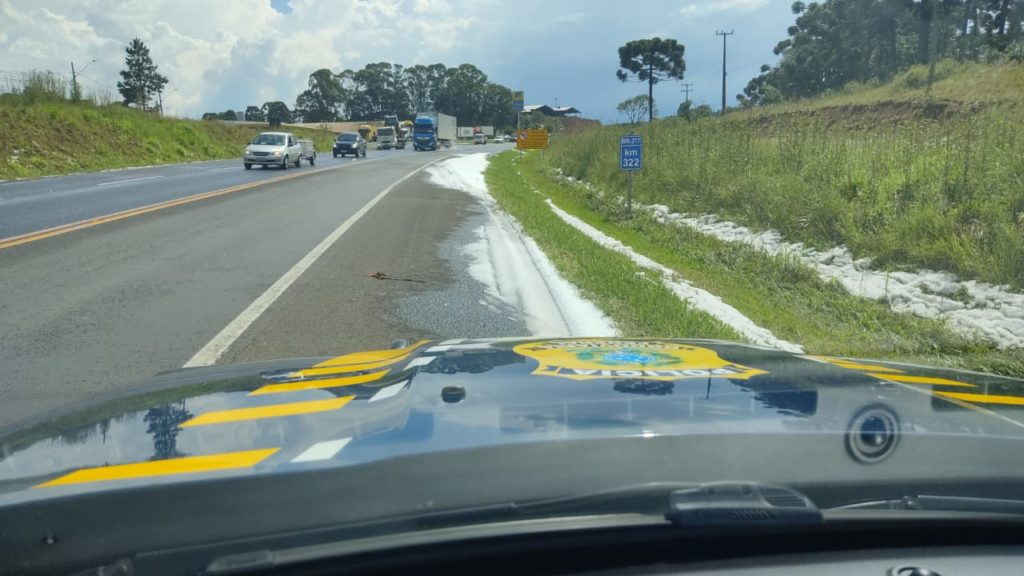 No início da tarde desta quarta-feira (16) um forte temporal passou sobre Guará, distrito de Guarapuava. Com a grande quantidade de chuva, ventania e granizo a cobertura de um posto de gasolina do distrito desabou. Felizmente, um dos caminhões que ali estavam estacionados, segurou o peso da cobertura que não caiu por completa. Ninguém ficou ferido.